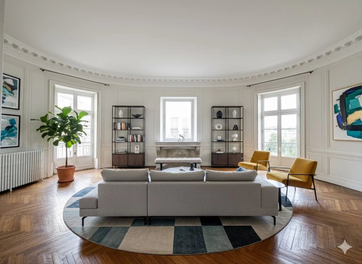 L’appartement séduit par son cachet authentique : parquets massifs, moulures, cheminées anciennes et belles hauteurs sous plafond.